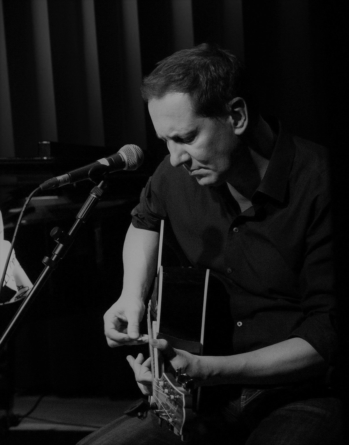 Eine Stimme, eine akustische Gitarre, Percussions, Bass.